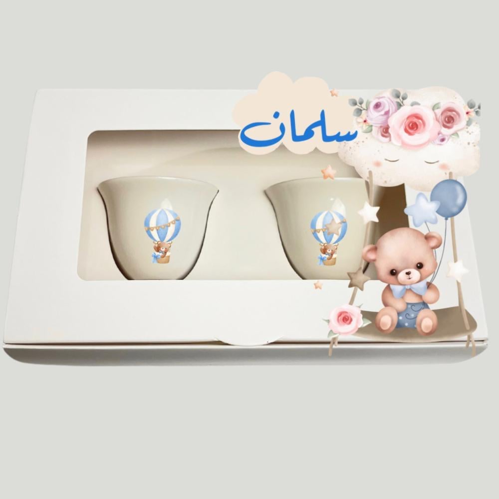 - فنجانين سيراميك برسمة خاصة للمواليد.